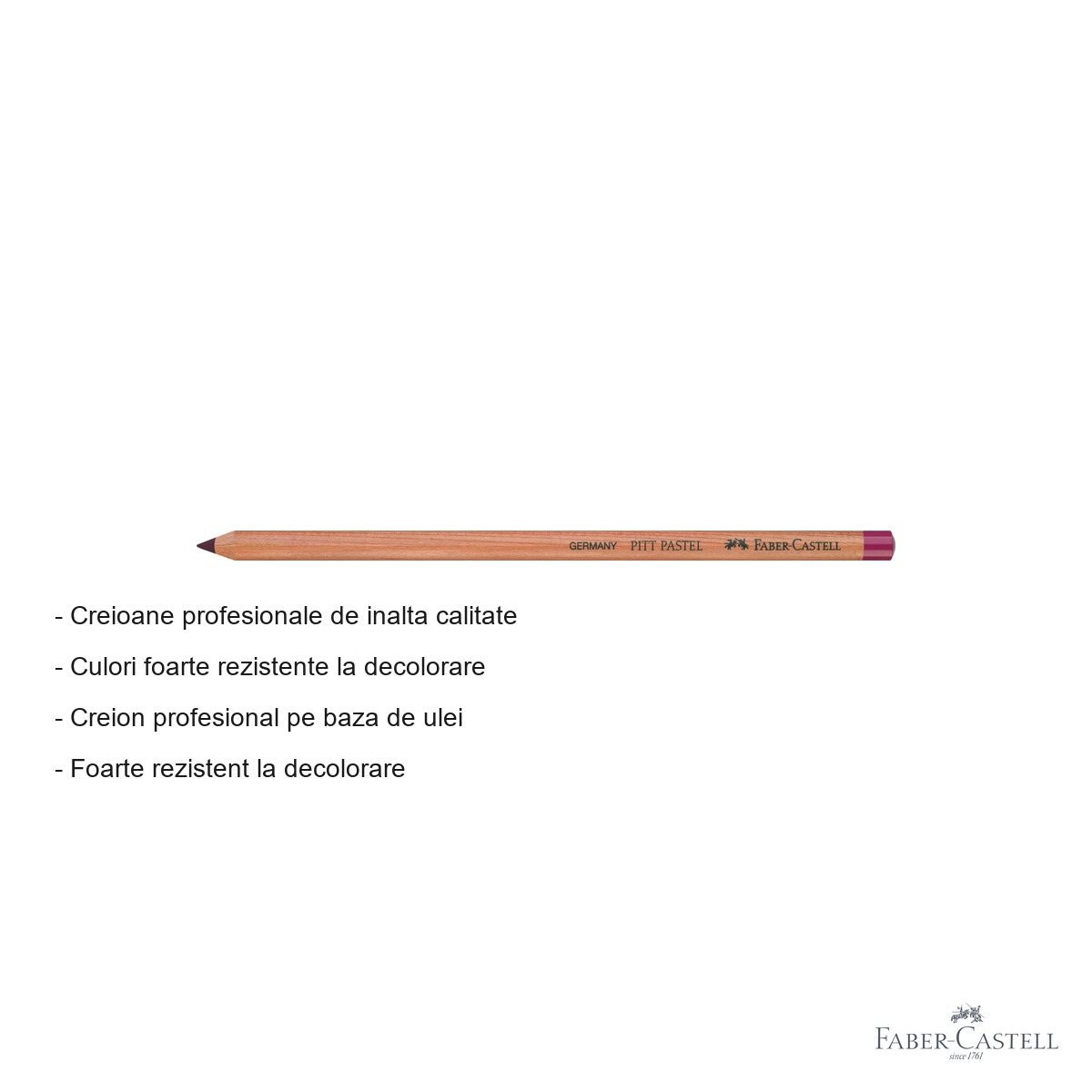 Faber-Castell este unul dintre cele mai respectate branduri din industria materialelor de desen si scriere, cu o traditie de peste 260 de ani in producerea de instrumente de calitate. Gama Pitt reprezinta varful ofertei pentru artisti, iar creioanele pastel pe baza de ulei din aceasta serie sunt recunoscute la nivel international pentru performanta si fiabilitatea lor.