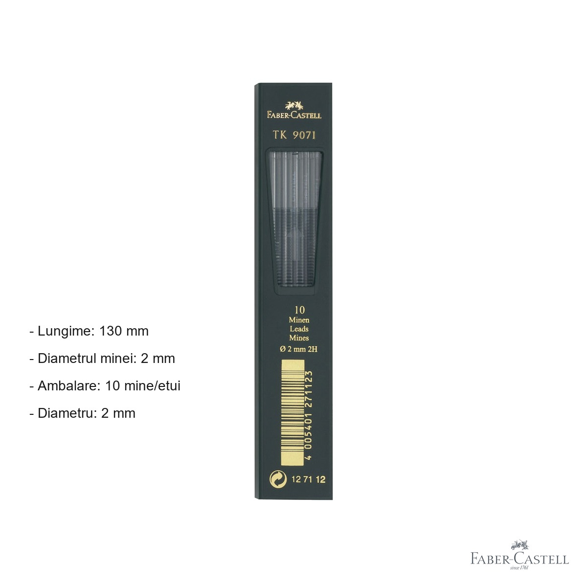 Minele Faber-Castell TK 2mm sunt compatibile cu creioanele mecanice din seria TK a aceluiasi brand: modelele TK 4600, TK 9400 si TK 9500. Inainte de a introduce o mina noua, asigura-te ca mecanismul creionului este curat si functional. Datorita duritatii 2H, aceste mine sunt recomandate in special pentru lucrul pe hartie de desen sau hartie tehnica de buna calitate - suprafetele prea moi pot absorbi grafitul neuniform. Pentru un rezultat optim in desene tehnice, mentine un unghi constant al creionului fata de hartie. Daca folosesti mina pentru hasuare artistica, apasa usor si uniform pentru a obtine gradatii fine si controlate. Pastreaza etui-ul inchis atunci cand nu folosesti minele, pentru a le proteja de umiditate si deteriorare mecanica.