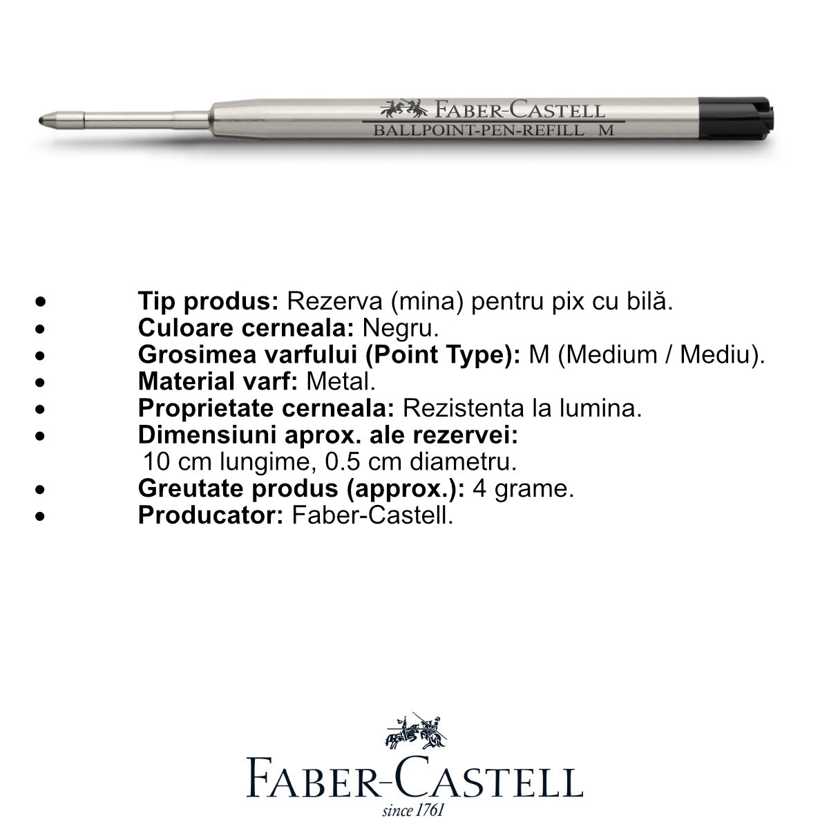 Rezerva pentru Pix Faber-Castell, Varf Metalic M, Negru, Capacitate Mare, Pentru Scris Professional