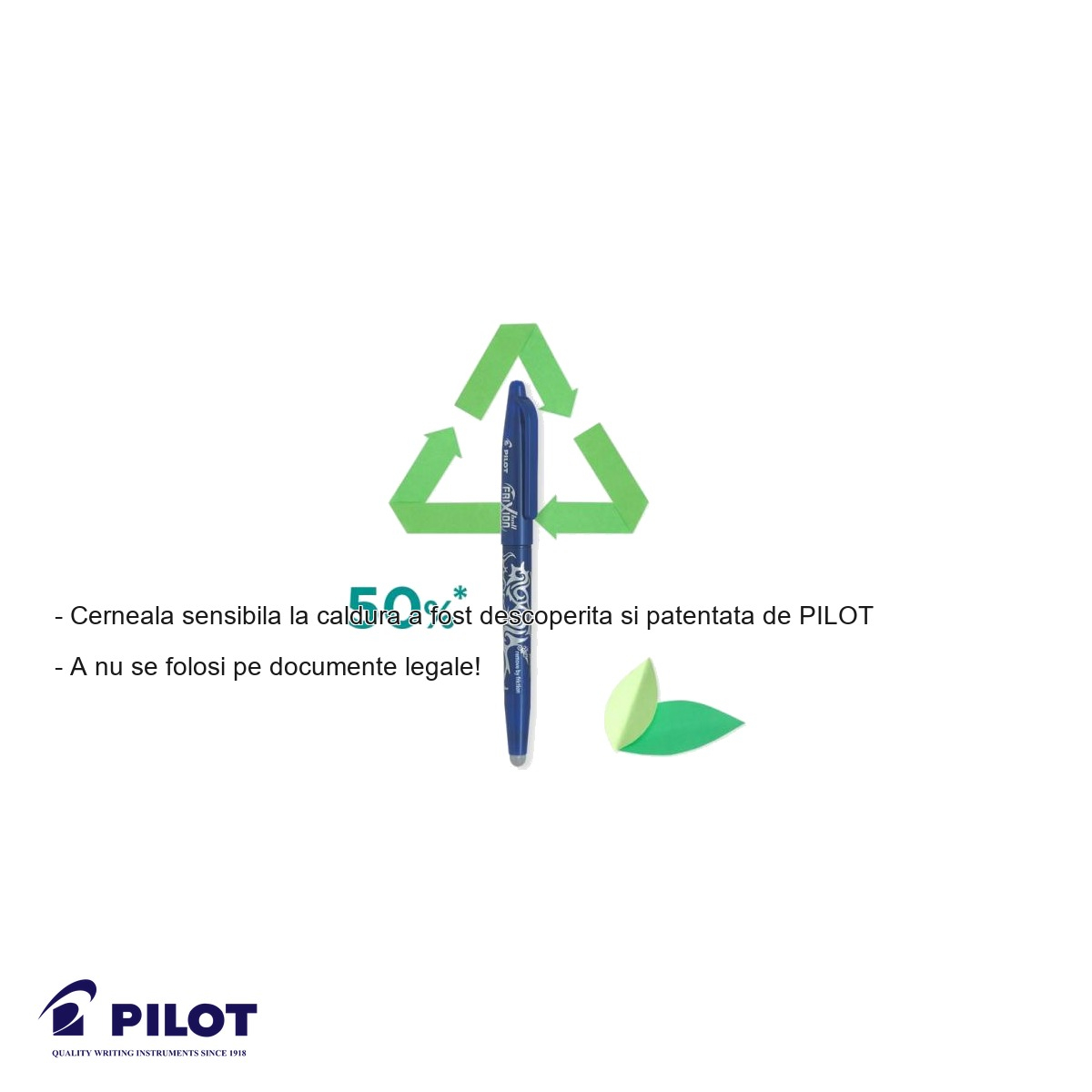 Daca ai nevoie de un instrument de scris care iti ofera libertatea de a corecta greselile fara a lasa urme pe hartie, roller-ul Pilot FriXion Ball 0.7mm in culoarea bordo este alegerea ideala. Fie ca esti student, profesionist sau pur si simplu iti place sa iti organizezi notitele cu stil, acest roller iti ofera experienta unui scris fluid, cu avantajul unic al cernelii care se poate sterge si refolosi. Cerneala sensibila la caldura, descoperita si patentata de PILOT, reprezinta o inovatie care a schimbat modul in care oamenii scriu si corecteaza.