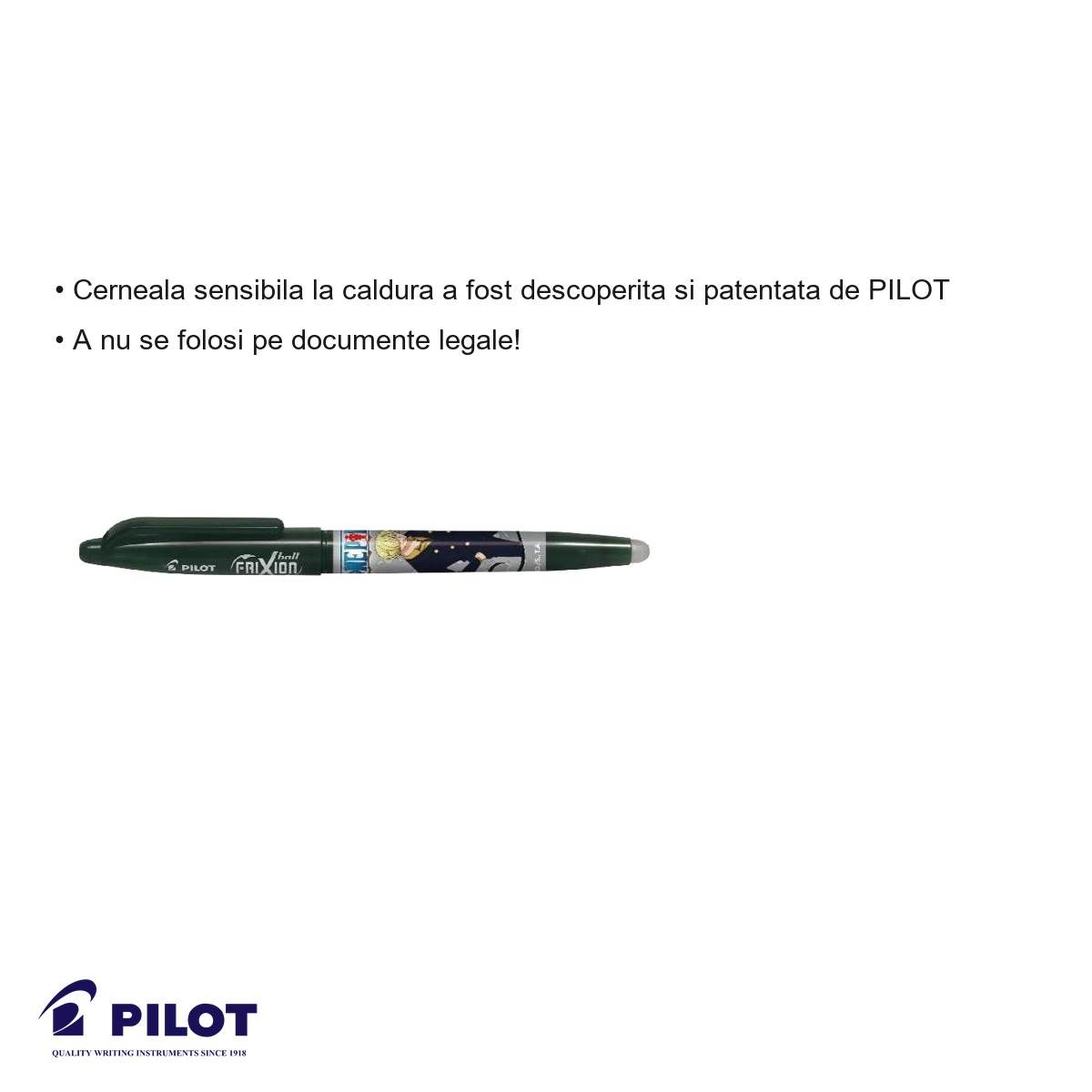 Daca esti in cautarea unui instrument de scris care combina tehnologia avansata cu un design atractiv, Roller-ul Pilot Frixion Ball 0.7 mm negru in editie limitata One Piece este alegerea perfecta. Fie ca esti student, profesionist sau fan al universului anime, acest roller iti ofera libertatea de a scrie fara griji. Greseli? Nu mai sunt o problema. Datorita cernelii termosensibile brevetate de Pilot, poti sterge ce ai scris rapid si fara a deteriora suprafata hartiei, dupa care poti rescrie imediat. Este instrumentul ideal pentru notite, planificatoare, jurnale sau orice alta activitate care presupune un scris curat si ingrijit.