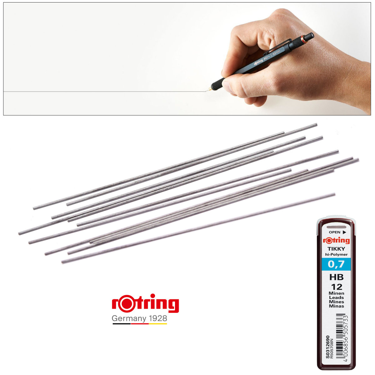 Set 12 mine creion 0.7mm HB cu Rezistenta Extra la Rupere, pentru Scriere Confortabila si Notite, in Etui Protector Rotring