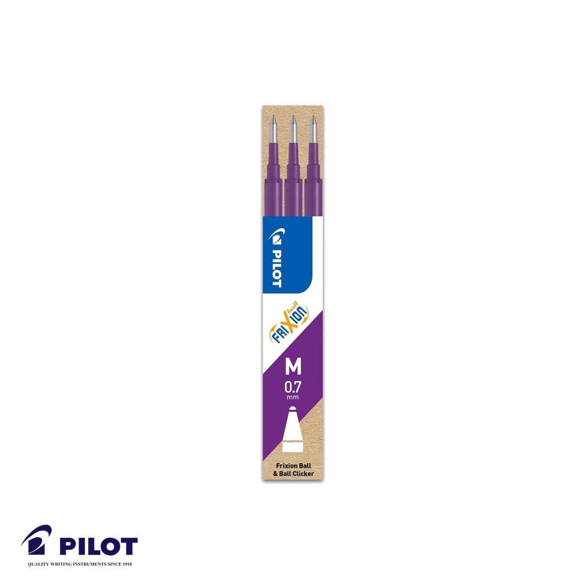 Daca folosesti un roller cu gel din seria Pilot FriXion si ai nevoie sa inlocuiesti mina consumata, acest set de 3 rezerve violet de 0.7mm este exact ce cauti. In loc sa arunci instrumentul de scris si sa cumperi unul nou, poti pur si simplu sa inlocuiesti mina, economisind bani si reducand deseurile. Rezervele sunt compatibile cu modelele FriXion Ball si FriXion Clicker, doua dintre cele mai populare rollere cu gel din gama Pilot, apreciate in special datorita tehnologiei unice de cerneala termosensibila care permite stergerea si rescriera textului fara urme neplacute pe hartie.