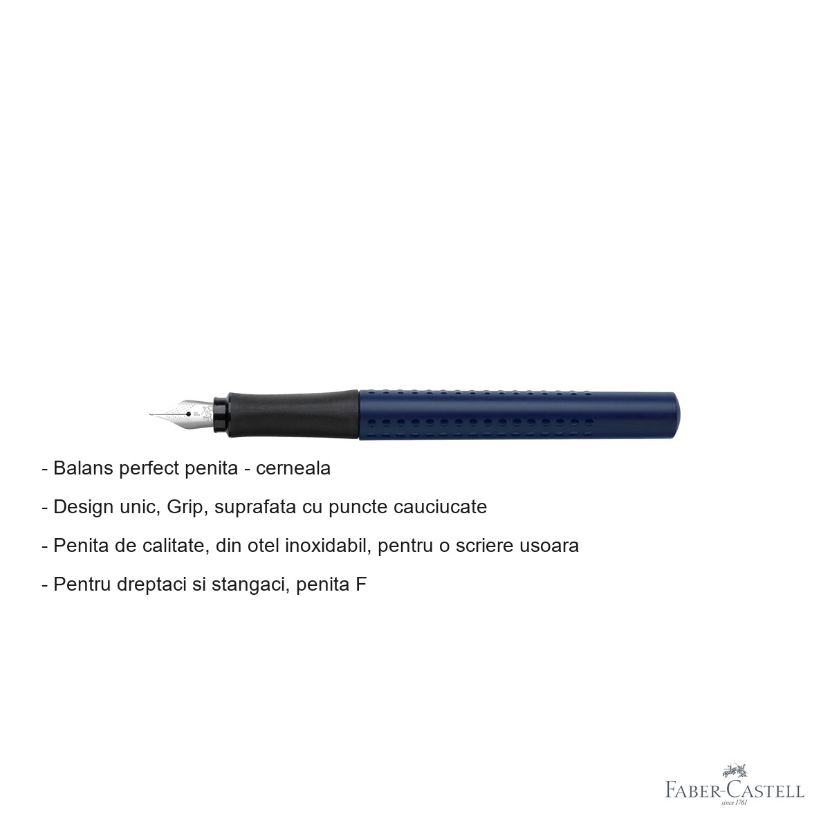 Stiloul Faber-Castell Grip 2011 nu este un simplu instrument de scris - este un aliat de nadejde pentru oricine isi petrece timp scriind. Zona de prindere cu puncte cauciucate reduce oboseala mainii pe parcursul sesiunilor lungi de scriere, oferind un control precis si o pozitie stabila a degetelor. Penita fina din otel inoxidabil garanteaza un traseu uniform al cernelii, fara intreruperi sau pete nedorite, ceea ce face scrisul mai placut si mai estetic. Clipul din metal robust asigura faptul ca stiloul ramane in siguranta in buzunarul de la camasa, in agenda sau in geanta, fara riscul de a se pierde. Balansul perfect dintre penita si rezervorul de cerneala contribuie la o experienta de scriere naturala, cu efort minim. Designul albastru clasic adauga o nota de eleganta si sofisticare oricarui context de utilizare.