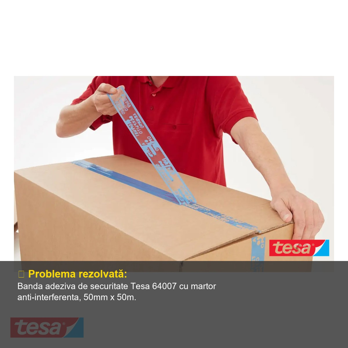 In contextul cresterii volumului de expeditii si al riscurilor asociate transportului de marfuri valoroase, securizarea coletelor a devenit o prioritate pentru companii si expeditori. Banda adeziva antifurt Tesa 64007 a fost conceputa special pentru a preveni deschiderea si reinchiderea neautorizata a cutiilor de carton, oferind un nivel suplimentar de siguranta pentru produsele electronice, hainele de marca, produsele de tutun, actele si orice alt continut confidential sau valoros. Cu ajutorul martorului anti-interferenta integrat, orice tentativa de manipulare a ambalajului devine imediat vizibila, descurajand eficient actele de furt pe parcursul lantului logistic.