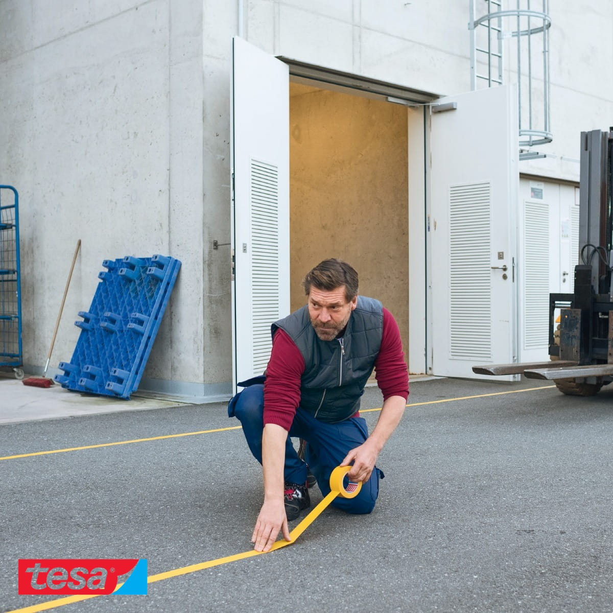 In orice spatiu de lucru, depozit, hala industriala sau zona publica, delimitarea clara a cailor de acces si semnalizarea zonelor restrictive reprezinta o necesitate esentiala pentru siguranta angajatilor si a vizitatorilor. Banda adeziva de marcare galbena Tesa, cu dimensiunile 50mm x 33m, este conceputa special pentru astfel de aplicatii. Realizata din PVC plastifiat rezistent si acoperita cu un adeziv agresiv din rasina cauciucata modificata pe baza de cauciuc natural, aceasta banda ofera o aderenta sigura pe numeroase tipuri de suprafete, putand fi aplicata rapid si fara unelte speciale. Este solutia ideala atunci cand ai nevoie de marcaje vizibile, eficiente si usor de aplicat, fie pe obiecte mobile, fie pe suprafete statice.