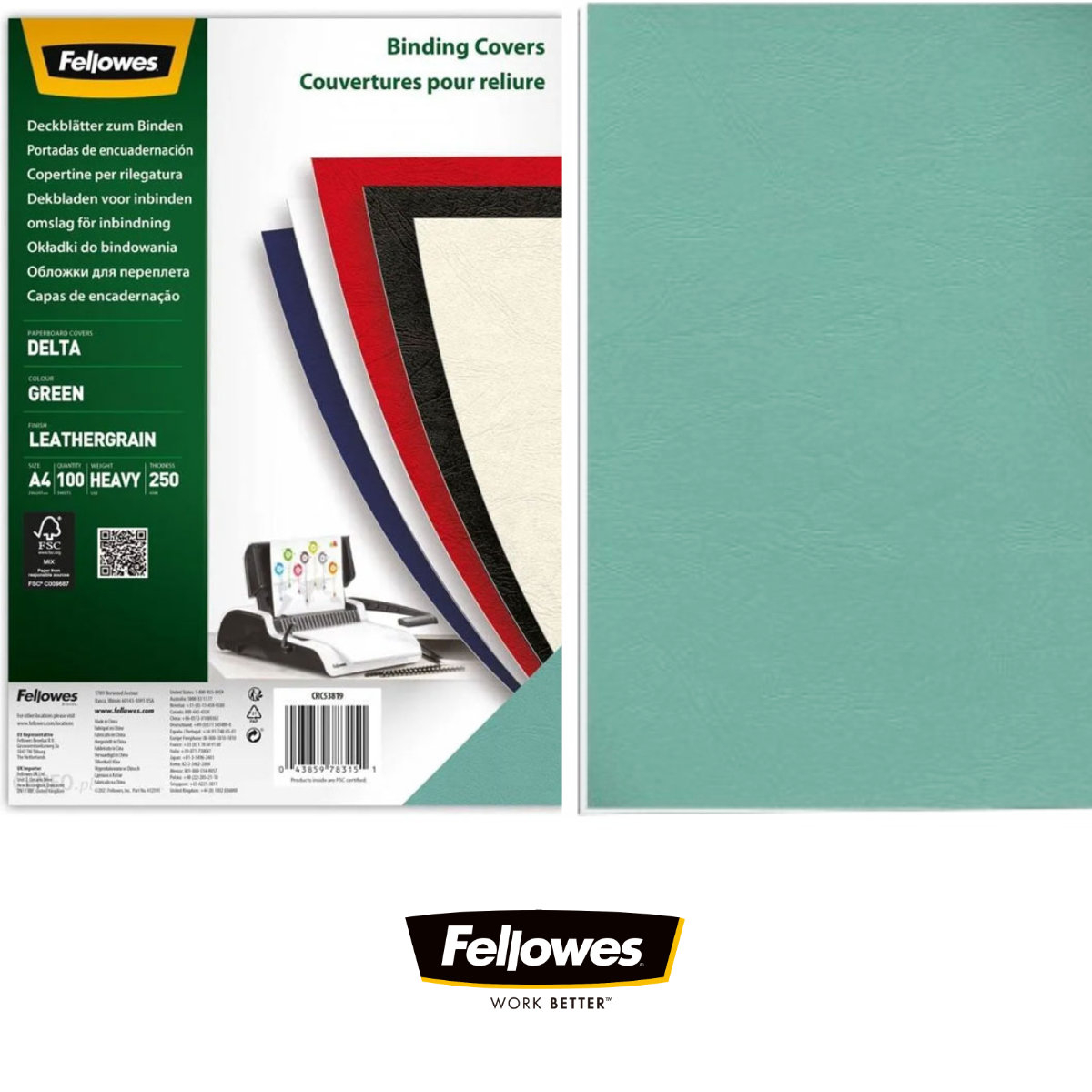 Setul de 100 de coperti din carton A4 culoare verde deschis de la Fellowes este solutia ideala pentru a finaliza rapoarte, manuale, prezentari, teze sau proiecte cu un finisaj impecabil si o nota de prospetime.