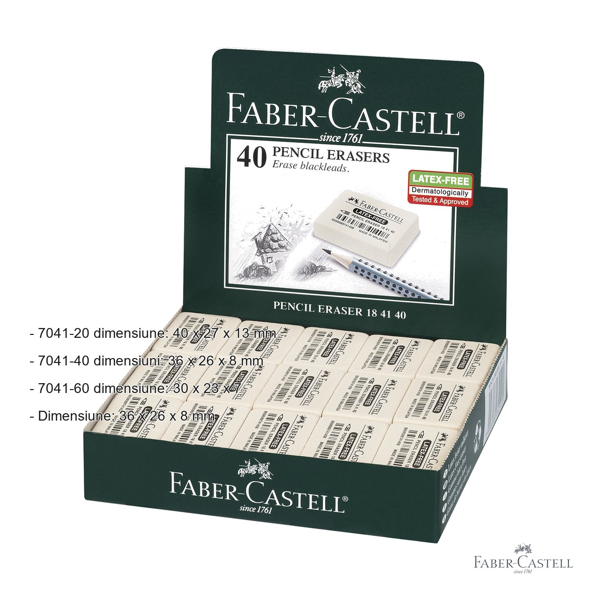 Radiera Faber-Castell 7041-40 se remarca prin compozitia sa din cauciuc natural, ceea ce o face potrivita inclusiv pentru persoanele sensibile sau cu alergii, deoarece nu contine latex si nu contine PVC. Aceste caracteristici o fac mai sigura in comparatie cu radierele fabricate din materiale sintetice. Cauciucul natural asigura o stergere eficienta, curata si precisa, fara a lasa reziduuri deranjante sau a deteriora fibrele hartiei. Dimensiunile de 36 x 26 x 8 mm o fac usor de tinut in mana, confortabila pentru utilizare indelungata, dar si compacta pentru a fi depozitata in orice penar sau sertar de birou. Faber-Castell este un brand cu traditie de peste 260 de ani in industria instrumentelor de scris si a accesoriilor de birotica, garantand calitate si durabilitate pentru fiecare produs din gama sa.