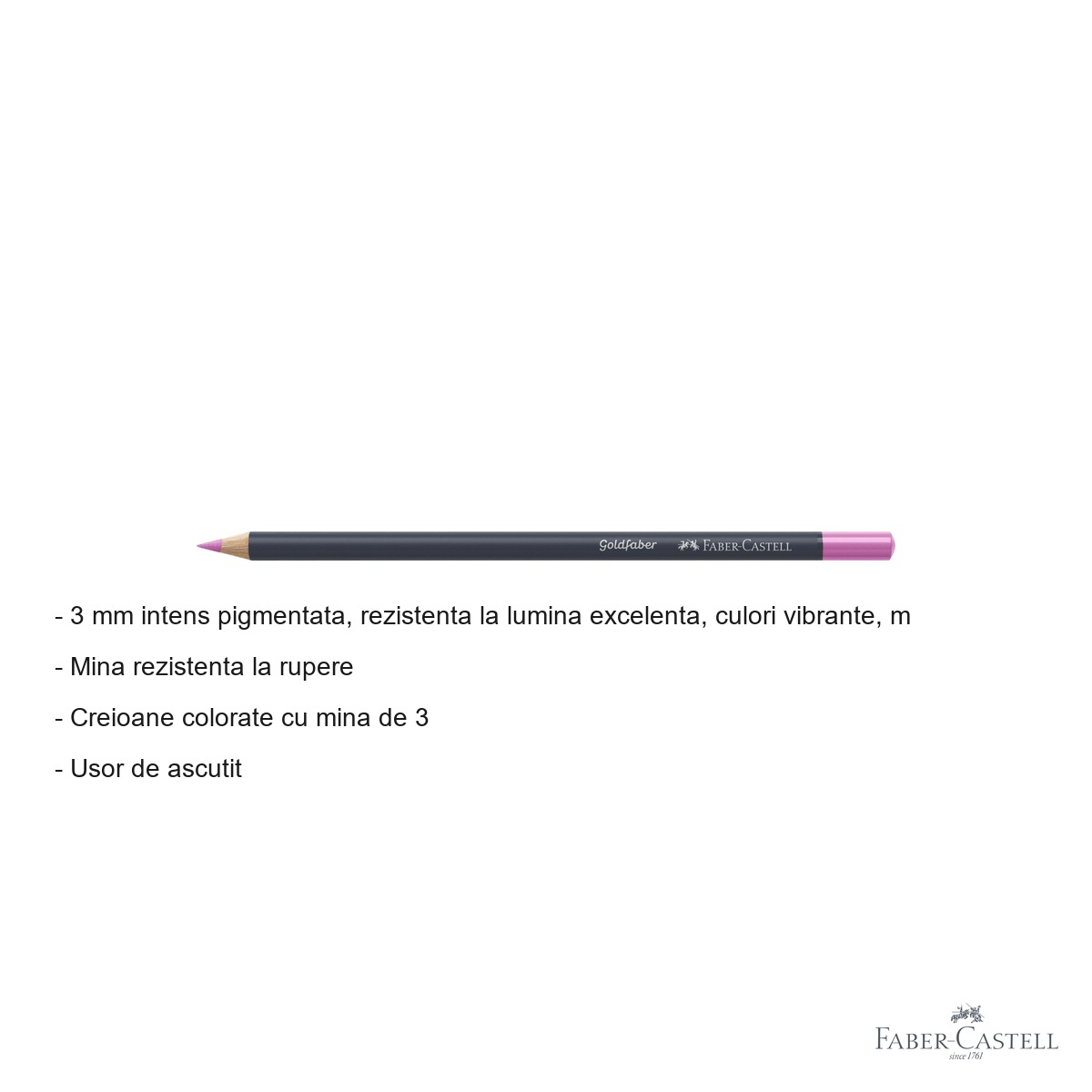 Creion colorat Faber-Castell Goldfaber Magenta Deschis 119 - Mina moale, culori vibrante