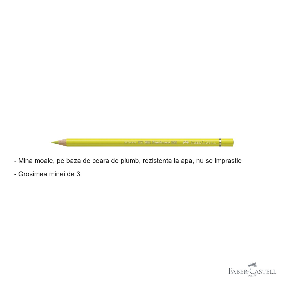Daca esti artist, ilustrator sau pasionat de desen si pictura, stii cat de importanta este calitatea instrumentelor pe care le folosesti. Un creion colorat de calitate inferioara poate ruina o lucrare prin culori sterse, mina care se rupe sau pigmenti care se estompeaza in timp. Creionul colorat Faber-Castell Polychromos in nuanta Galben Cadmium Lamaie este raspunsul la toate aceste probleme, oferindu-ti performanta profesionala intr-un singur instrument de desen.