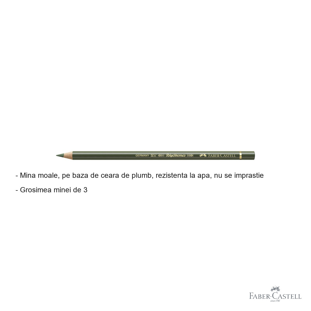 Orice artist, ilustrator sau pasionat de desen stie ca instrumentele de calitate fac diferenta dintre un rezultat mediocru si o opera remarcabila. Creionul colorat Faber-Castell Polychromos Verde Crom Opac este conceput special pentru cei care nu fac compromisuri in alegerea materialelor de lucru. Cu o traditie indelungata in fabricarea instrumentelor de scris si desen, Faber-Castell ofera prin gama Polychromos un creion de inalta performanta, potrivit atat pentru tehnici clasice, cat si pentru lucrari mixte sau ilustratii de precizie. Daca esti in cautarea unui creion colorat care sa ofere culori vii, durabile si usor de aplicat pe diverse suprafete, acesta este alegerea potrivita.