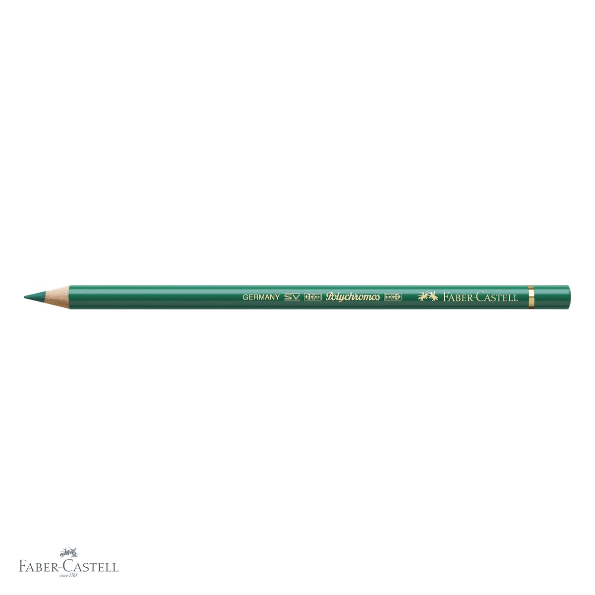 Creion colorat Faber-Castell Polychromos verde inchis, mina moale pe baza de ceara, rezistent la apa, pentru arta si grafica