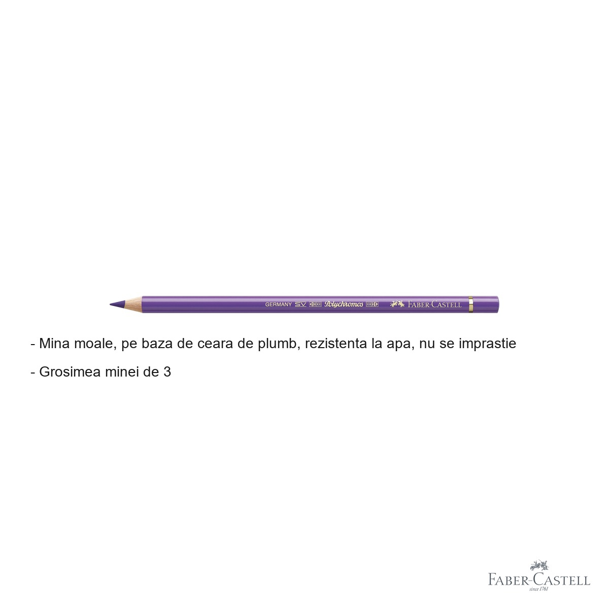 Creion colorat Faber-Castell Polychromos violet, mina moale pe baza de ceara, rezistent la apa, pentru artisti