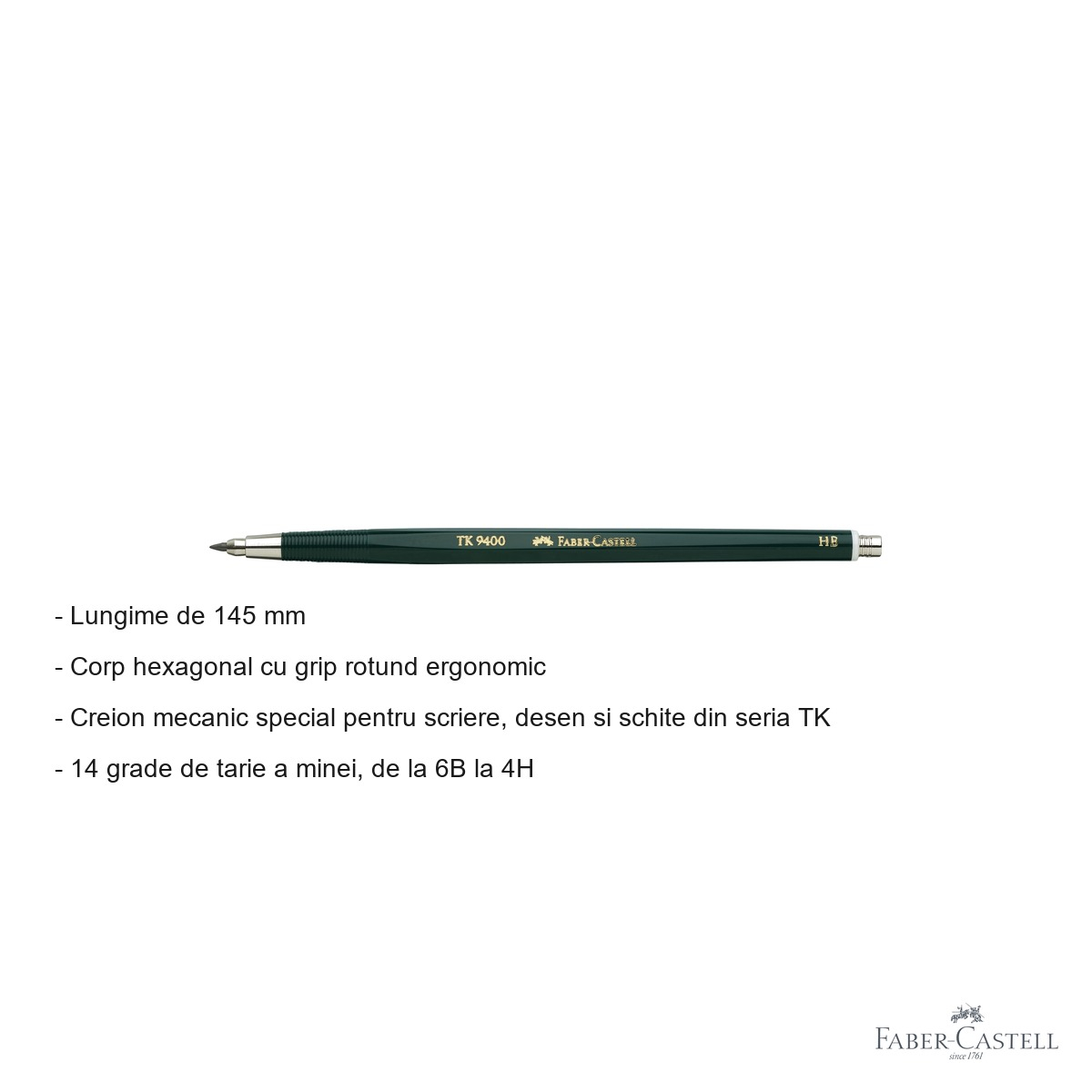 Pentru profesionistii din domeniul desenului tehnic, arhitecturii sau artei, un creion mecanic de calitate superioara reprezinta un instrument indispensabil. Creionul mecanic Faber-Castell TK 9400 cu mina de 2mm ofera precizie, confort si durabilitate pentru toate proiectele dumneavoastra creative si tehnice.