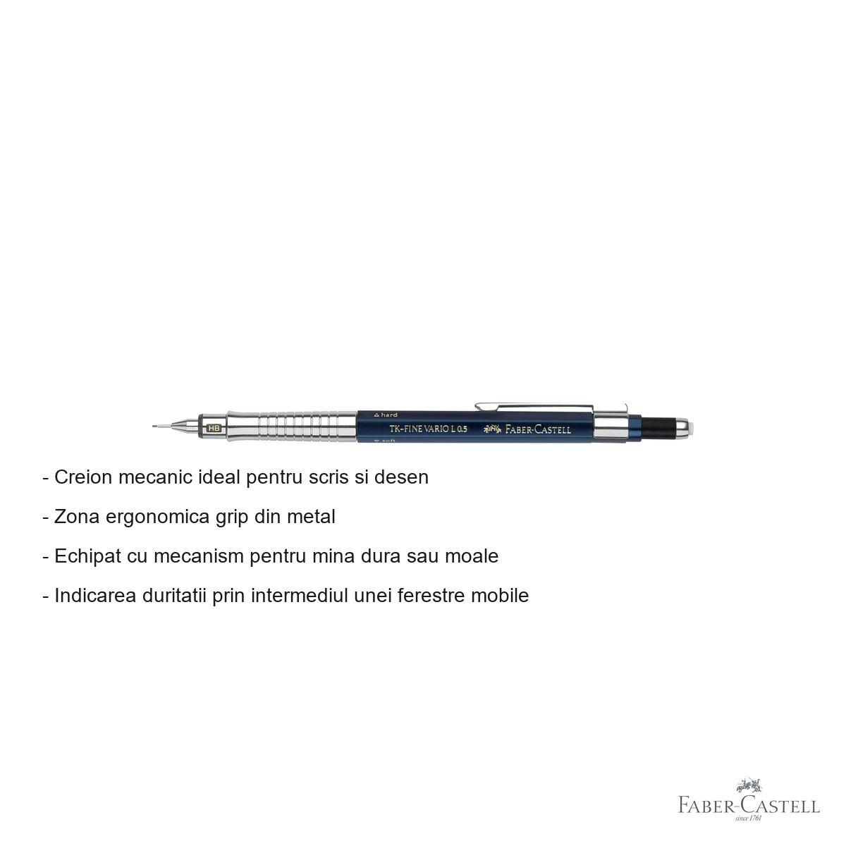Pentru profesionistii care lucreaza cu desene tehnice, schite arhitecturale sau au nevoie de precizie maxima in scris, creionul mecanic reprezinta un instrument indispensabil. Modelul TK-Fine Vario L de la Faber-Castell combina traditia brandului german cu tehnologie moderna, oferind un instrument de scris si desenat care se adapteaza perfect nevoilor dumneavoastra.