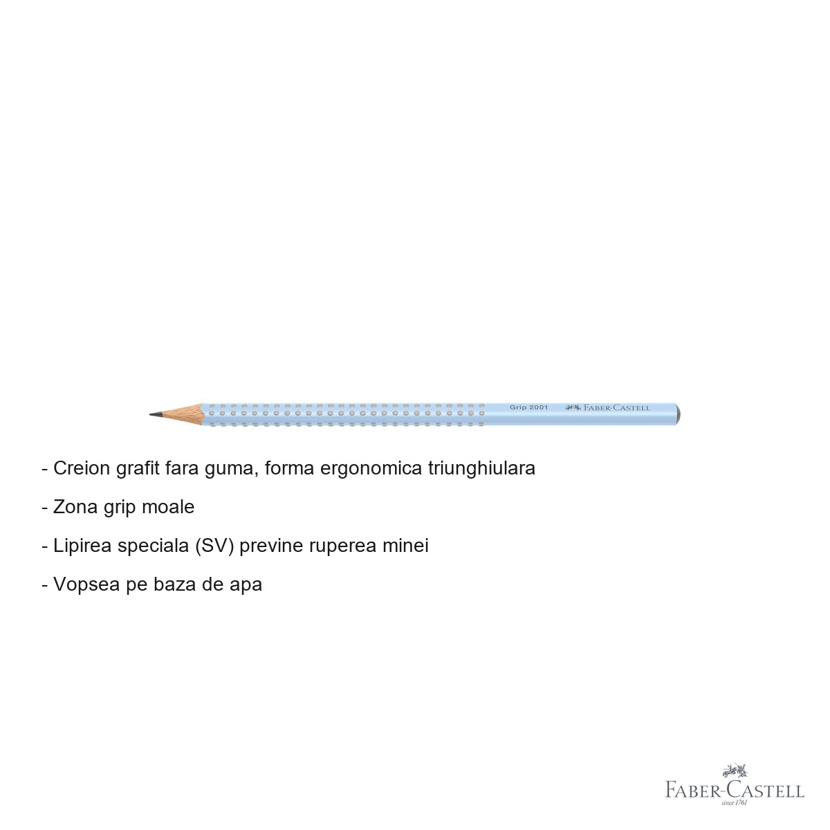 Creion grafit Faber-Castell Grip 2001 Blue Sky, mina B, forma ergonomica triunghiulara, fara guma