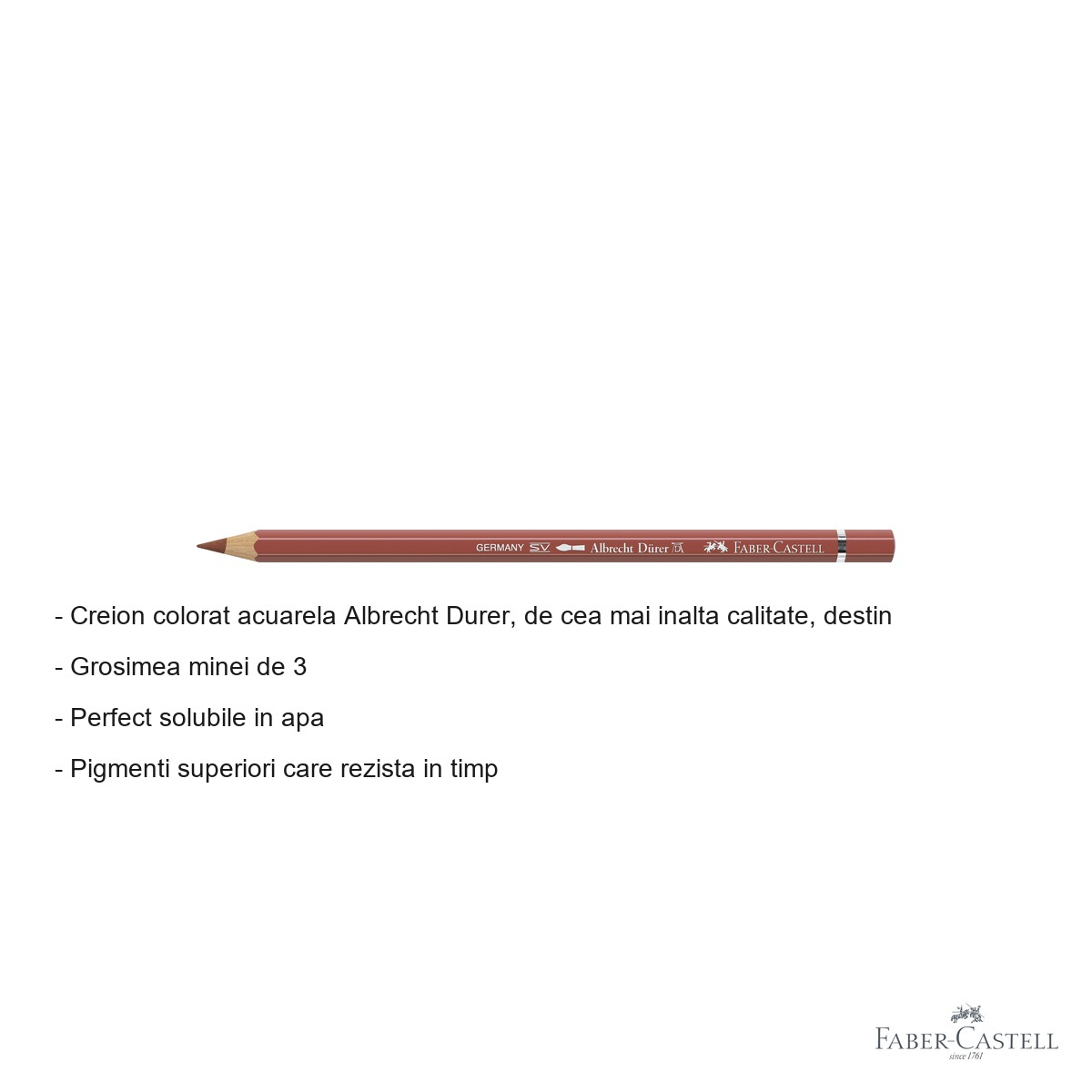 Creion colorat acuarela Faber-Castell Albrecht Durer rosu venetian 190, mina 3.8mm, pentru artisti