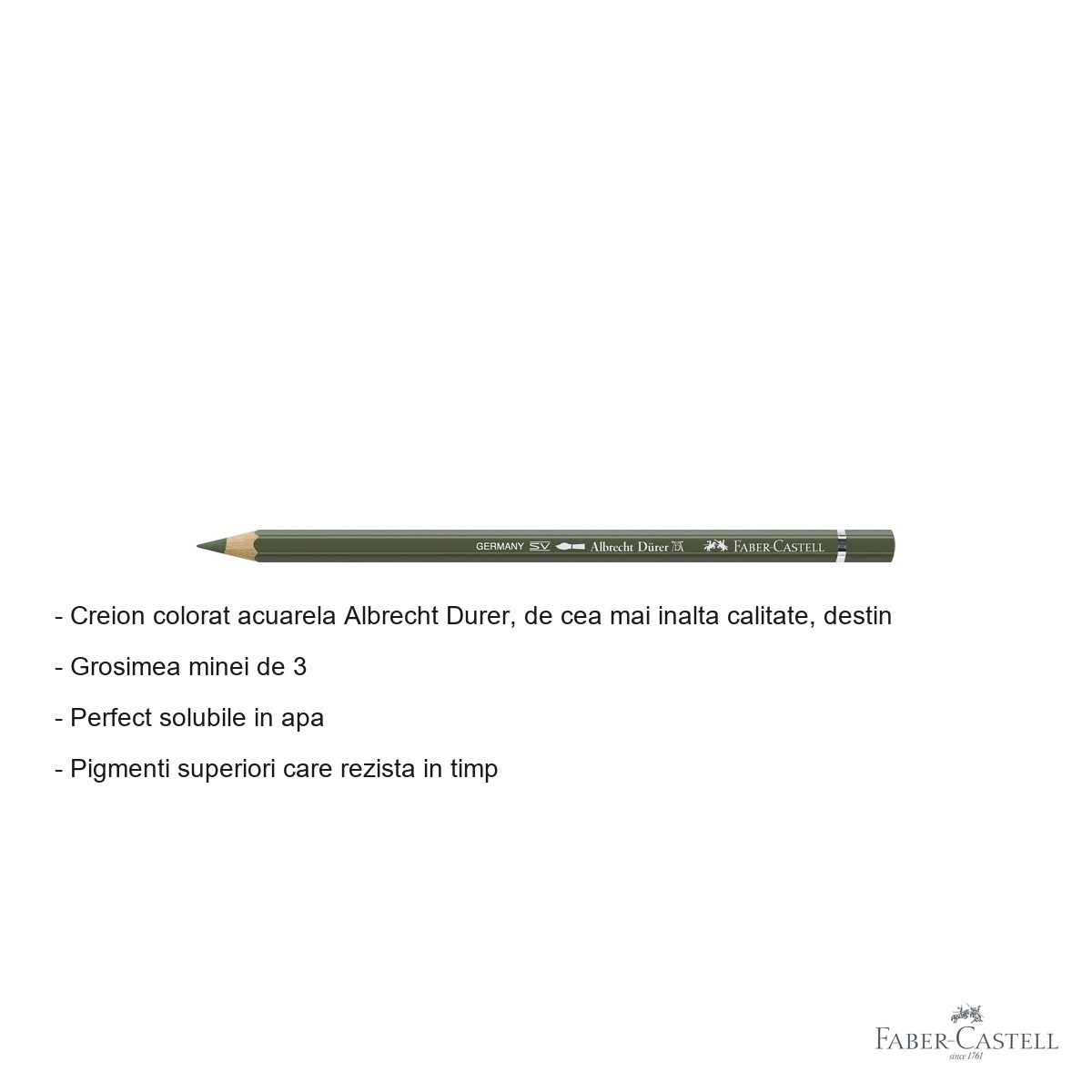 Pentru artistii care cauta excelenta in creatiile lor, creionul colorat acuarela Albrecht Durer de la Faber-Castell reprezinta instrumentul ideal pentru exprimarea artistica complexa. Acest creion profesional combina precizia desenului cu fluiditatea picturii in acuarela, oferind versatilitate maxima in tehnicile de lucru. Culoarea verde crom opac 174 adauga profunzime si vibratie lucrarilor, fiind perfecta pentru peisaje, natura moarta sau orice creatie care necesita nuante de verde intens.
