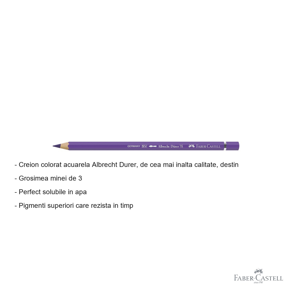 Pentru artistii care cauta versatilitate maxima in exprimarea creativa, creionul colorat acuarela Albrecht Durer reprezinta instrumentul ideal de lucru. Fie ca doriti sa creati desene detaliate sau picturi in acuarela expresive, acest creion profesional va ofera libertatea de a trece cu usurinta de la tehnica uscata la cea umeda, obtinand rezultate spectaculoase de fiecare data.
