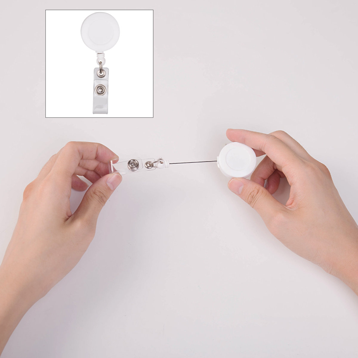Set 12 Bucati Dispozitiv cu Snur Retractabil extensibil 80 cm, Alb - Bratara Retractabila pentru Carduri, Badge-uri si Acces