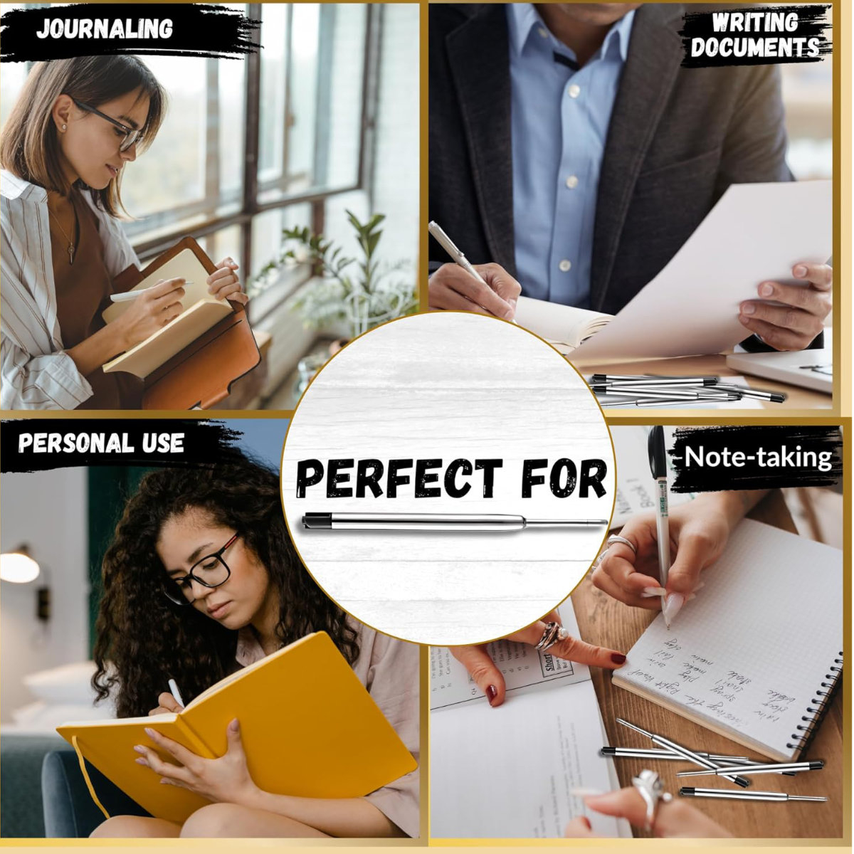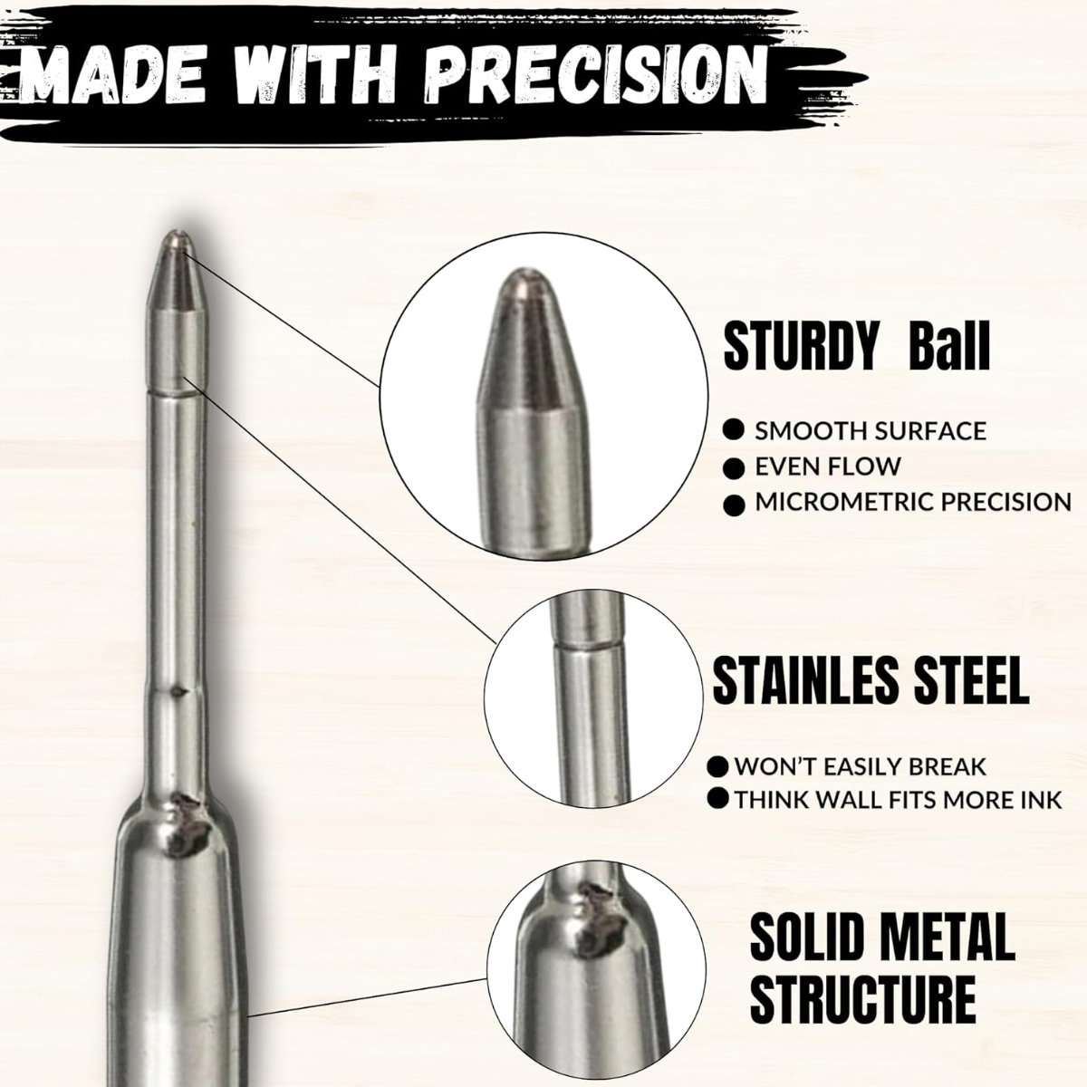 Cu un varf metalic de 0,8mm (mediu) si o constructie din otel inoxidabil, ea asigura un scris lin, precis si consistent. Cerneala neagra de calitate se usuca rapid, fara sa pateze, oferind un rezultat profesional pe orice hartie. Restabileste viata pixului tau preferat cu o reincarcare de incredere si accesibila.