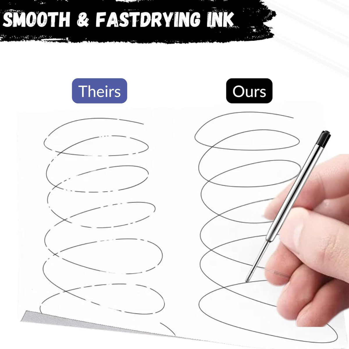 • Cerneala de Calitate: Cerneala neagra, cu viteza ridicata de uscare, asigura un scris curat si clar, rezistent la palire si fara pata. Este perfecta pentru notite, documente si scrisori.