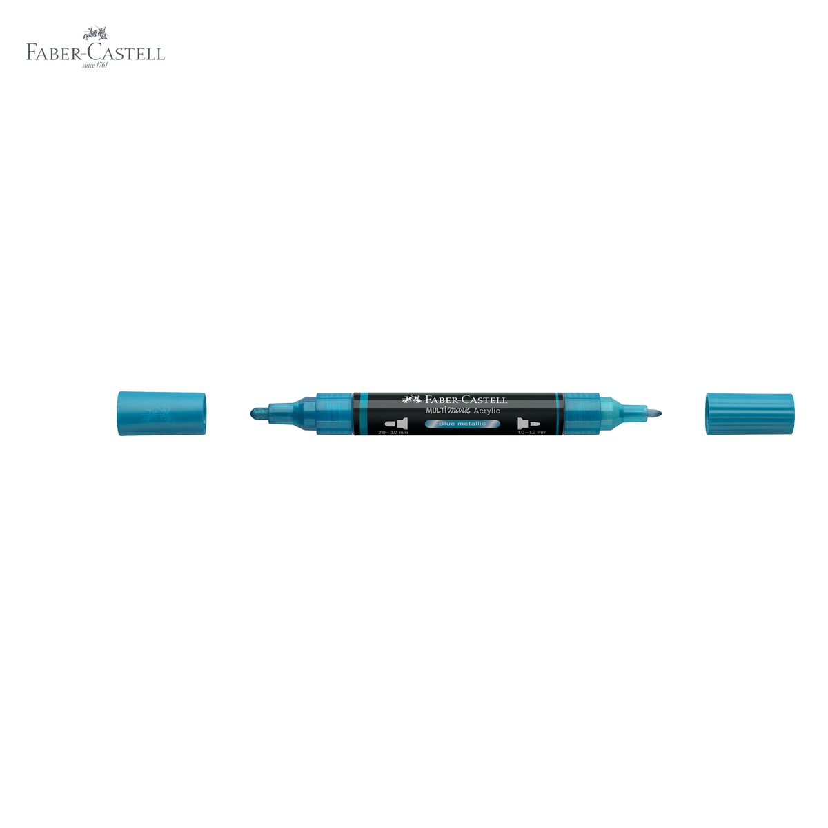 Marker acrilic Faber-Castell Multimark, culoare albastru metalizat 292, varf dublu, pentru suprafete multiple