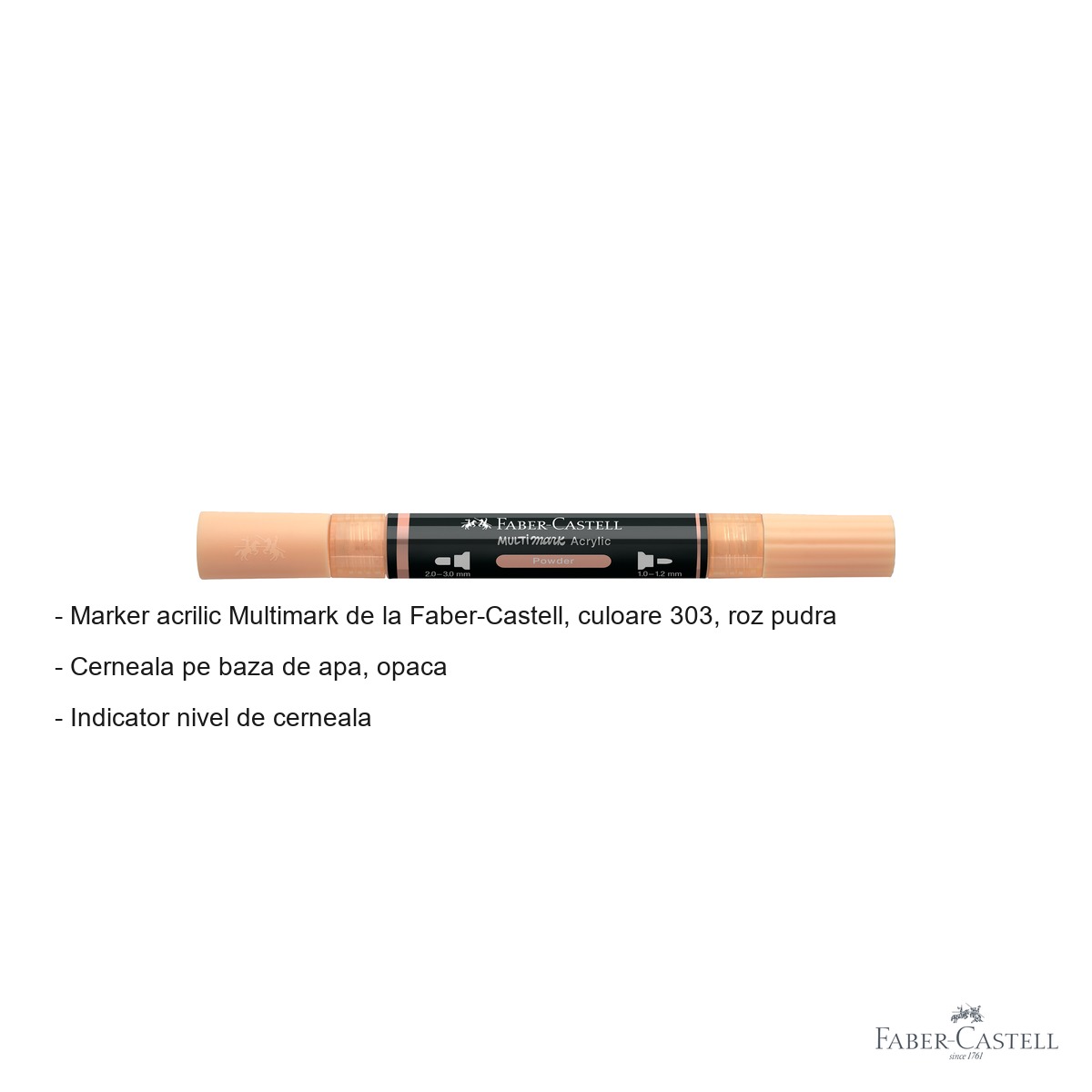 Daca esti in cautarea unui marker acrilic versatil, precis si usor de folosit, Marker acrilic Multimark Faber-Castell, culoare 303 Roz Pudra este alegerea potrivita pentru tine. Fie ca esti artist, designer, hobbyist sau pur si simplu vrei sa personalizezi obiecte din jurul tau, acest marker iti ofera controlul si calitatea de care ai nevoie. Cerneala acrilica opaca pe baza de apa adera excelent pe o multitudine de suprafete, oferind culori vibrante si rezultate profesionale de fiecare data.