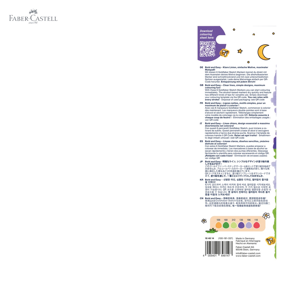 Setul Goldfaber Bold and Easy de la Faber-Castell vine cu o serie de avantaje clare fata de markerele obisnuite. In primul rand, dubla functionalitate a fiecarui marker elimina nevoia de a schimba instrumentele constant: varful flexibil tip pensula permite trasaturi de diferite grosimi in functie de presiunea aplicata, ideal pentru colorare expresiva si lettering, in timp ce varful tip liner asigura linii fine si precise, perfecte pentru contururi si detalii. Cerneala pe baza de alcool garanteaza o aplicare uniforma, fara striuri vizibile, si culori intense care raman vibrante pe hartie. Dupa uscare, cerneala devine rezistenta la apa, ceea ce inseamna ca lucrarile tale sunt durabile si nu se sterg accidental. Un alt avantaj important este angajamentul de sustenabilitate: corpul si capacul markerelor sunt fabricate din material 100% reciclat, ceea ce face acest produs o alegere responsabila fata de mediu. In plus, brandul Faber-Castell este sinonim cu calitate si fiabilitate, garantand o experienta placuta de utilizare pentru orice nivel de experienta.