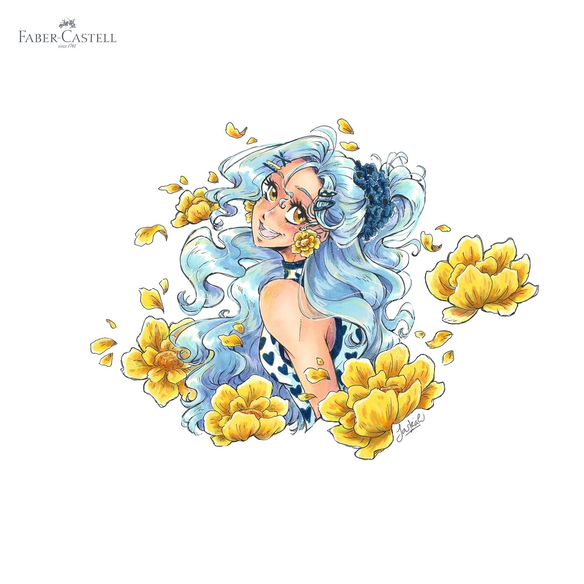 | Umbrire si degradee de culoare | Varf pensula flexibila al sketchmarkerului Goldfaber | Umbrirea fetei, efecte de volum pe haine si fundal |