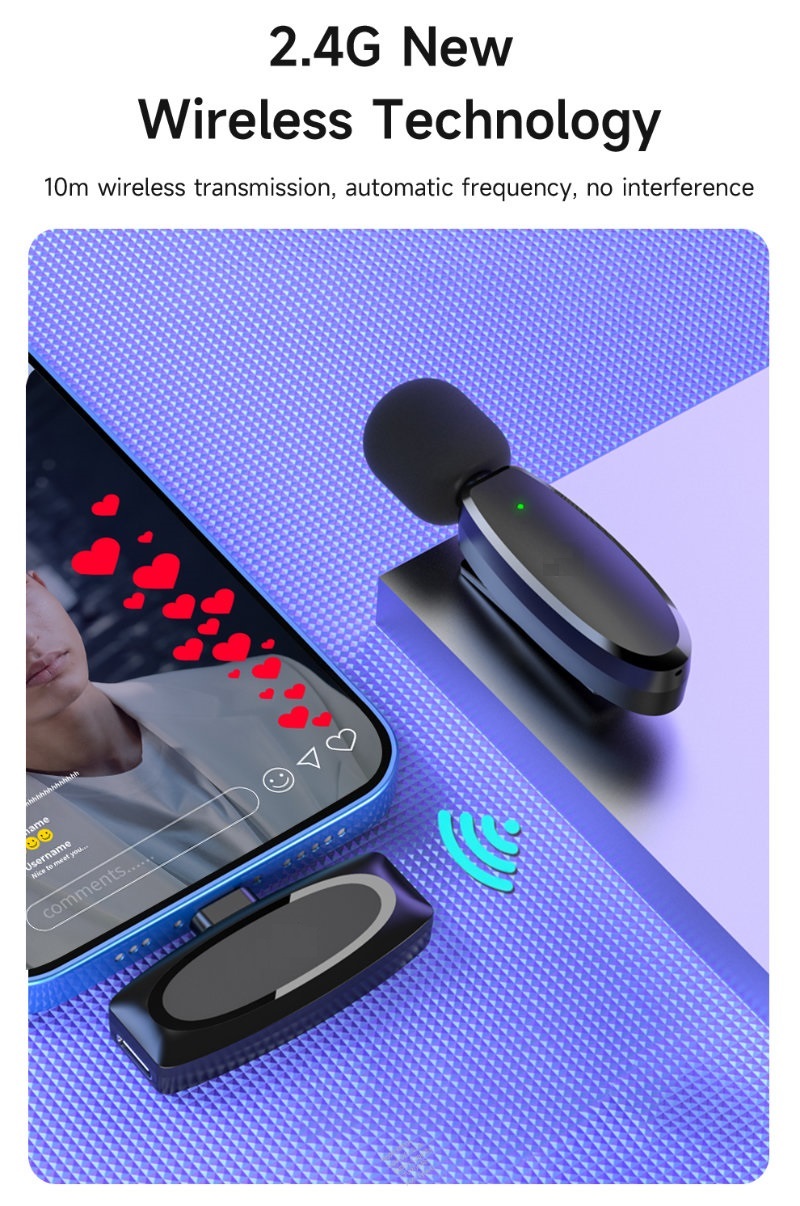 Microfon Wireless Lavalier Lightning pentru iPhone - Reducere Zgomot ENC, 7 Ore Autonomie, Plug&Play, Ideal pentru Vlogging si Facetime