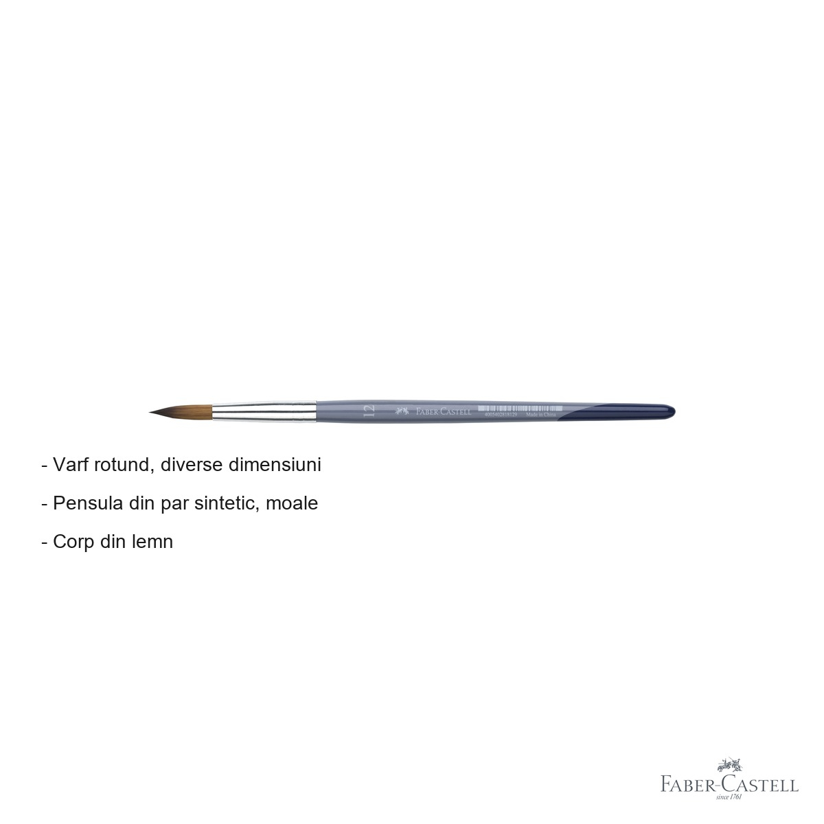 Atunci cand lucrezi cu acuarele sau cu creioane colorate acuarela, alegerea pensulei potrivite face diferenta dintre un rezultat mediocru si o lucrare reusita. Pensula nr. 12 cu varf rotund din gama Creative Studio Faber-Castell a fost conceputa pentru a raspunde nevoilor atat ale elevilor si studentilor la arte, cat si ale amatorilor pasionati de pictura. Cu un corp ergonomic din lemn si par sintetic de calitate, aceasta pensula ofera control, precizie si durabilitate in utilizarea zilnica.