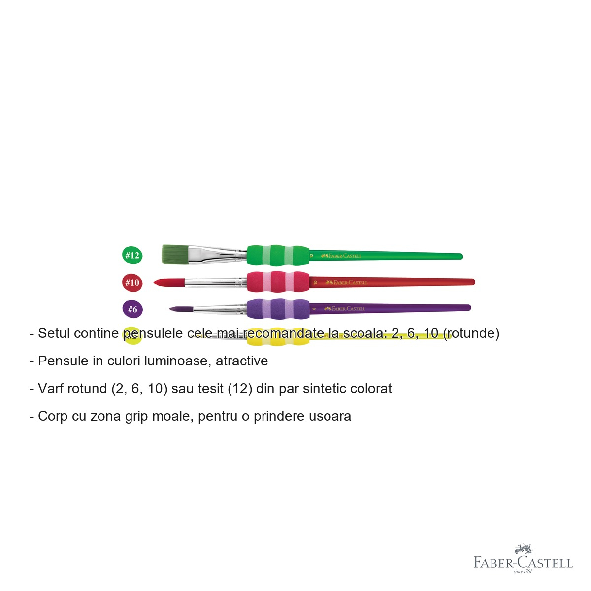 Orice elev care descopera lumea culorilor si a picturii are nevoie de unelte de calitate care sa il ajute sa se exprime liber si creativ. Setul de 4 pensule Faber-Castell Soft Touch este conceput special pentru activitatile scolare, oferind confort in utilizare, durabilitate si rezultate frumoase indiferent de tehnica abordata. Cu un design atractiv si functionalitate dovedita, aceste pensule devin rapid preferatele copiilor la ora de desen.