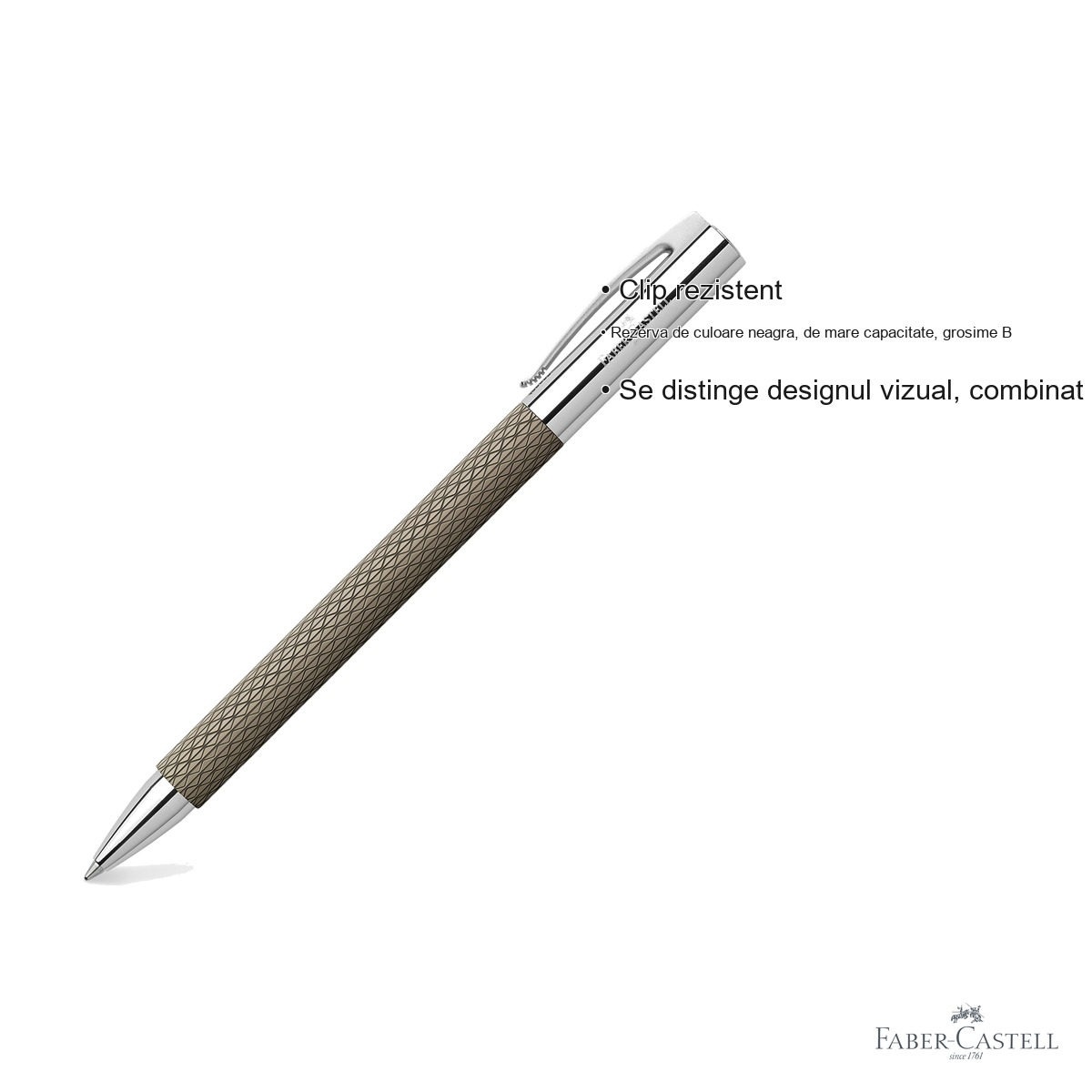 Pixul Faber-Castell Ambition OpArt Black Sand se remarca printr-o serie de avantaje clare fata de pixurile obisnuite. Corpul din rasina rara asigura o greutate echilibrata in mana, oferind confort real la scris indelungat, fara oboseala. Tehnica de gravare guilloche nu este doar un element decorativ - ea confera o textura usor reliefata care imbunatateste priza, prevenind alunecarea pixului in timpul utilizarii. Capetele din metal cromat lucios adauga durabilitate si o eleganta aparte, pastrandu-si aspectul impecabil in timp. Mecanismul prin rasucire este silentios, precis si mult mai durabil decat mecanismele cu buton, eliminand uzura prematura. Rezerva de mare capacitate, cu scriere in negru si grosime B, asigura o linie expresiva, clara si vizibila, ideala atat pentru scris cat si pentru semnatura. Clipul rezistent permite prinderea sigura de buzunar, agenda sau caiet, fara riscul pierderii.