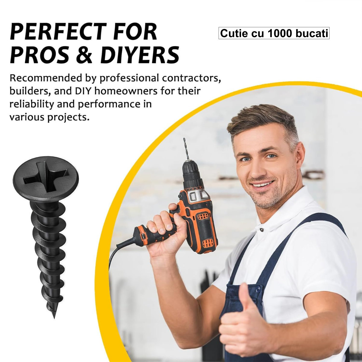 Acest set industrial de 1000 de suruburi cu filet rapid, diametru majorat de 4.2 mm si lungime impunatoare de 70 mm este solutia ta definitiva.