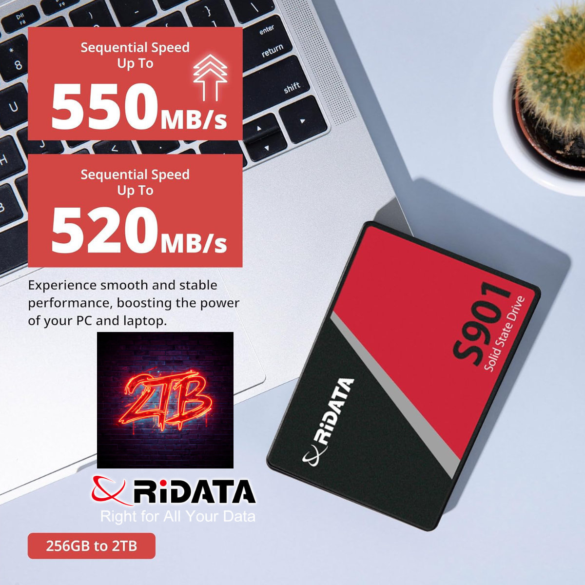 RIDATA SSD 2.5 SATA 2TB RIDATA S901, Viteza 550 MB/s, pentru Arhiva Masiva, Gaming Extrem, Workstation Profesional, cu Tehnologie LDPC ECC si Fiabilitate Superioara