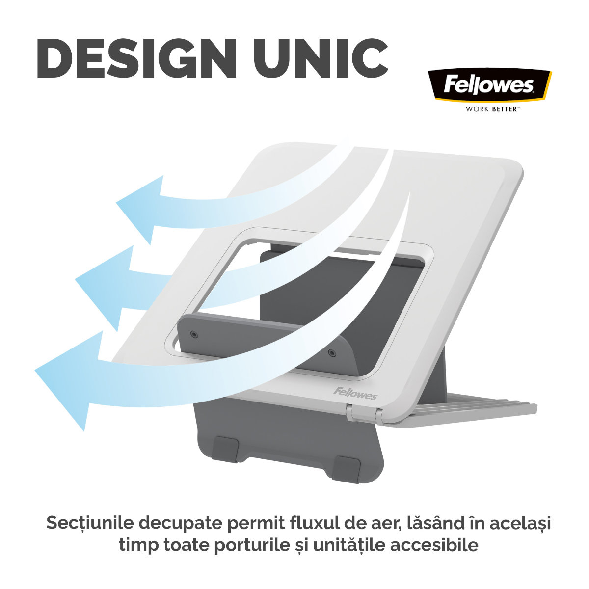 | Birou corporate / hibrid | Ridicarea laptopului la nivelul ochilor pentru angajatii care isi schimba frecvent locul de munca |